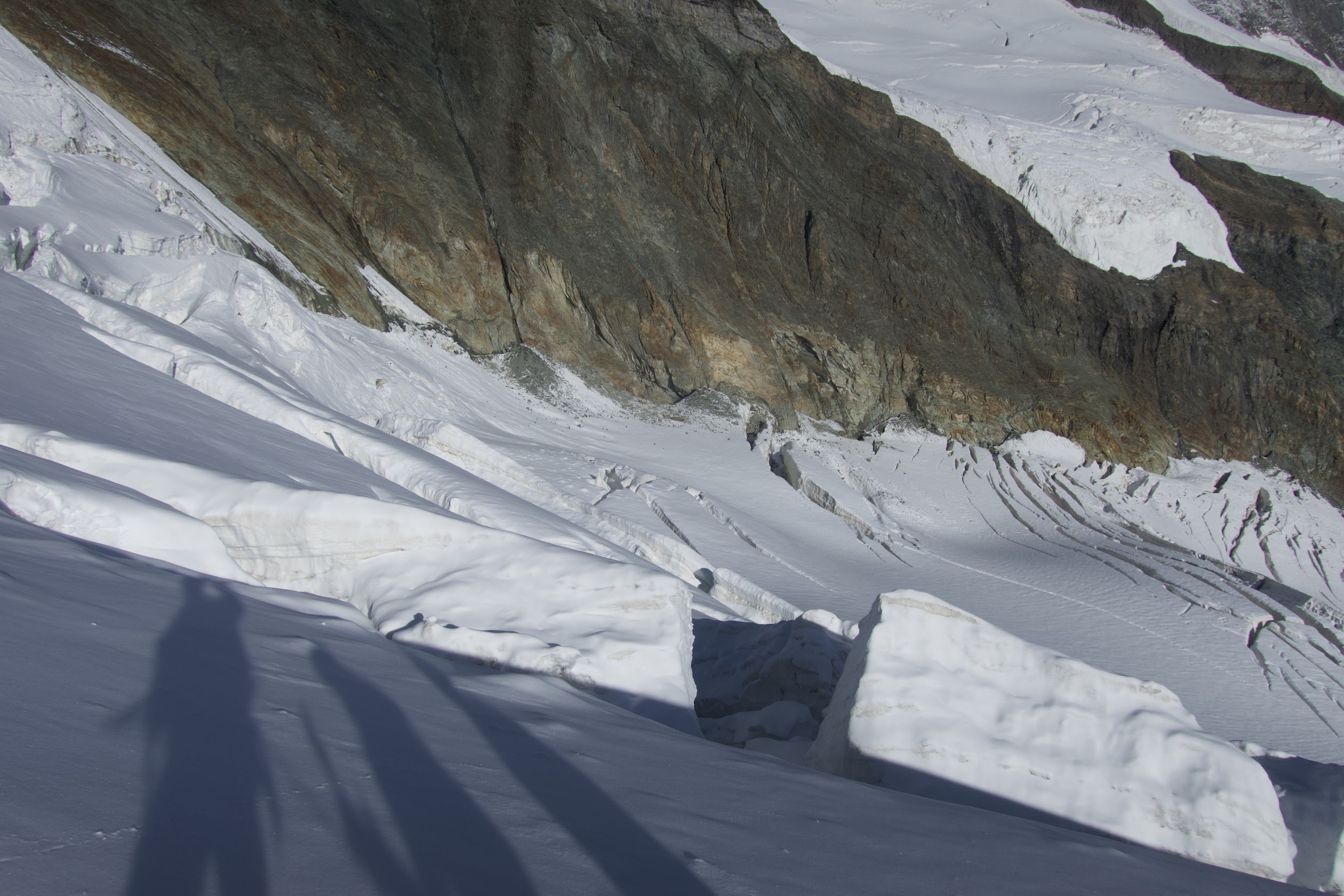 Выход ночью, подъем длинный и займет много времени. На вершину взойдем рано утром, затем чтобы спускаться еще не по раскисшему леднику. Затем по состоянию, либо остаемся ночевать в хижине, либо, перекусив, отправляемся дальше вниз на поезд и в Цермат.